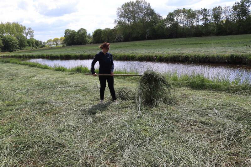 Er zijn een aantal stukjes grasland aanwezig. In de zomerperiode wordt het gras gemaaid om deze te drogen tot hooi. Hooi bestaat voornamelijk uit gedroogd gras. Het hooi wordt voornamelijk verkocht als paardenhooi, dit omdat er voor paarden en andere dieren in de winter te weinig grasgroei is. Hooi wordt geperst in hooibalen en opgeslagen in de schuur. Als het hooi nog te vochtig is dan zullen de balen worden gewikkeld.